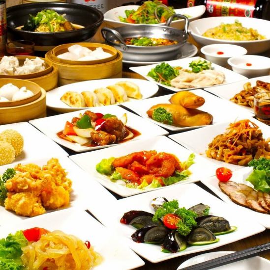 本場中国や日本の数々の有名ホテル等で修行を積んだ熟練料理人が腕を振るう、本格中華をリーズナブルに!本格中華の120分食べ飲み放題コース(4950円)も大好評☆人気の麻婆豆腐、よだれ鶏マーラー風味、餃子など、その数豪華60品!ゆったり座れるテーブル席や大人数でもOKのお座敷は、歓送迎会や会社宴会にもぴったり♪
